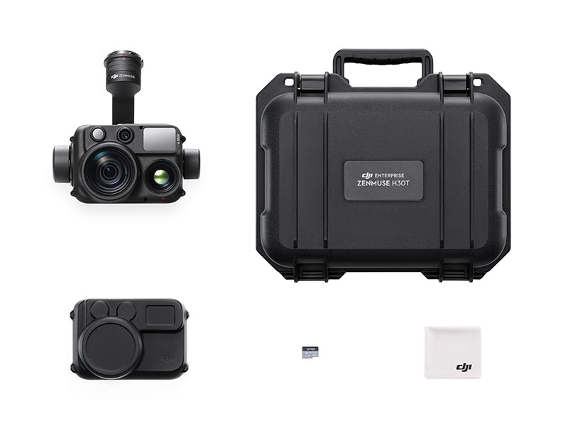 Zenmuse H30T is a cutting edge, all weather, multi-sensor payload ready to amplify your aerial imaging arsenal. H30T boasts five stellar modules: a high resolution 48MP wide angle camera, Infrared Thermal Camera, powerful 40MP zoom camera, high precision laser range finder and near-infrared auxiliary light tuned to 850 nanometres.
